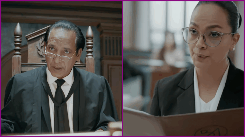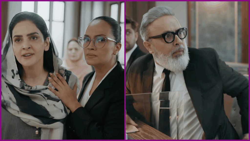 In the scene, Aamina Sheikh’s character Beenish, who is defending Seher played by Saba Qamar, cites landmark verdicts including Justice Ayesha Malik’s ruling against the two-finger test and Justice Mansoor Ali Shah’s judgment on the use of sexual history in rape cases.