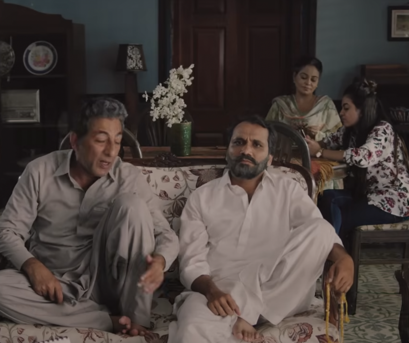 Every time the government changes, the father (and later the son) agrees: the last government was the worst, and the next one will fix everything. The mother (and later, the daughter-in-law) exists to bring food and absorb the monologues. The one exception is a reference to the 2014 Peshawar School Massacre, where a mother’s tearful prayer is particularly heartbreaking. Children roll their eyes and get on with their lives until they too grow up to watch the news incessantly and complain about it. The remote control becomes the most powerful object in the house… until the electricity goes out and everyone comments on it.
