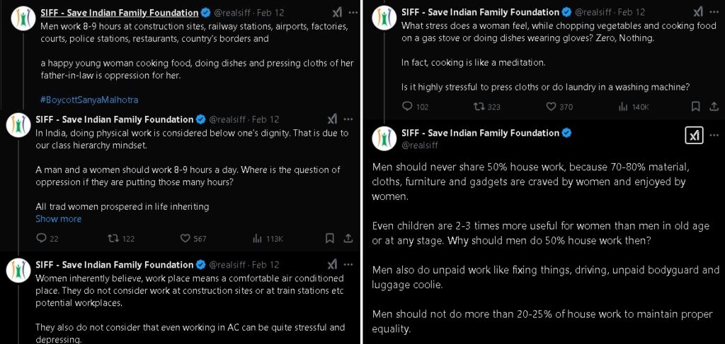 Not everyone has embraced the film’s message. The Save Indian Family Foundation (SIFF), a men’s rights group, has been particularly vocal, arguing that the film exaggerates domestic labor struggles and unfairly vilifies men. In a series of posts, they ridiculed the idea that cooking or cleaning could be oppressive, stating that such tasks are “like meditation” and not physically or mentally taxing.